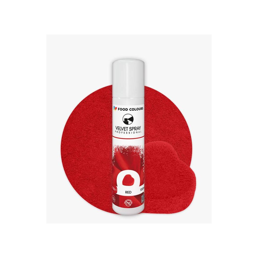 Sametová barva ve spreji ke zdobení vychlazených povrchů, např. máslových krémů, fondánových hmot, marcipánu, zákusků, čokolády a dalších. Složení: hnací plyn: E943a, E944, E943b, kakaový tuk, barviva E170, E120, E161, emulgátor E322 sójový lecitin, antioxidant E392Doplňkové parametry