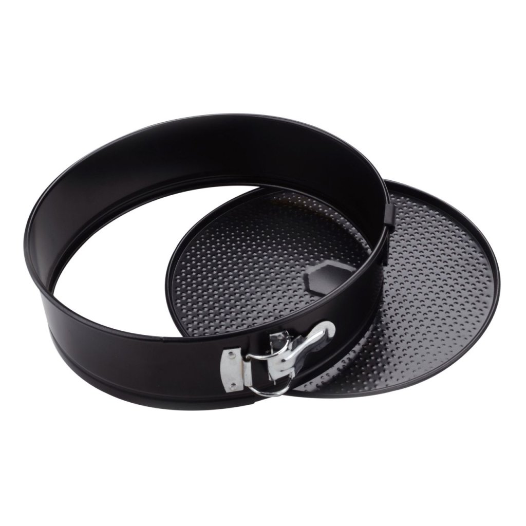 Nepřilnaví dortová forma pro snadné a rychlé pečení korpusů. Forma se nemusí vysypávat, stačí postříkat separačním sprejem, který najdete v naší nabídce a to hned od několika výrobců. Forma na dorty je vyrobena z ocelového plechu o síle 1,5 mm a je opatřena antiadhézním nástřikem. Tato dortová forma je rozevírací a usnadňuje snadné vyjmuté upečeného korpusu z formy. Dno formy je perforované, nese na sobě drobné mřížky, které napomáhají rozvádění tepla při pečení a nepřilnavosti těsta ke dnu formy.