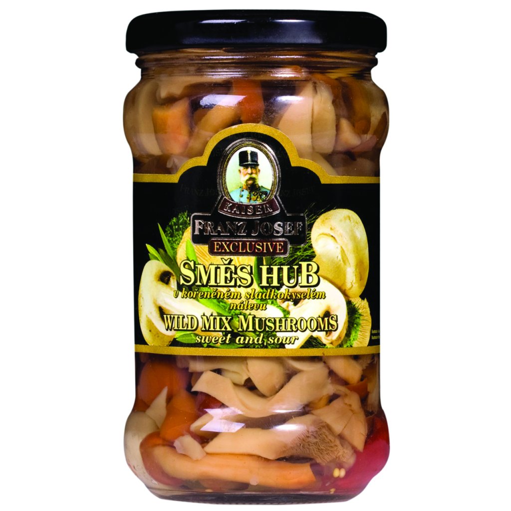 SLOŽENÍ produktu FRANZ JOSEF KAISER Směs hub ve sladkokyselém nálevu 314 ml:
