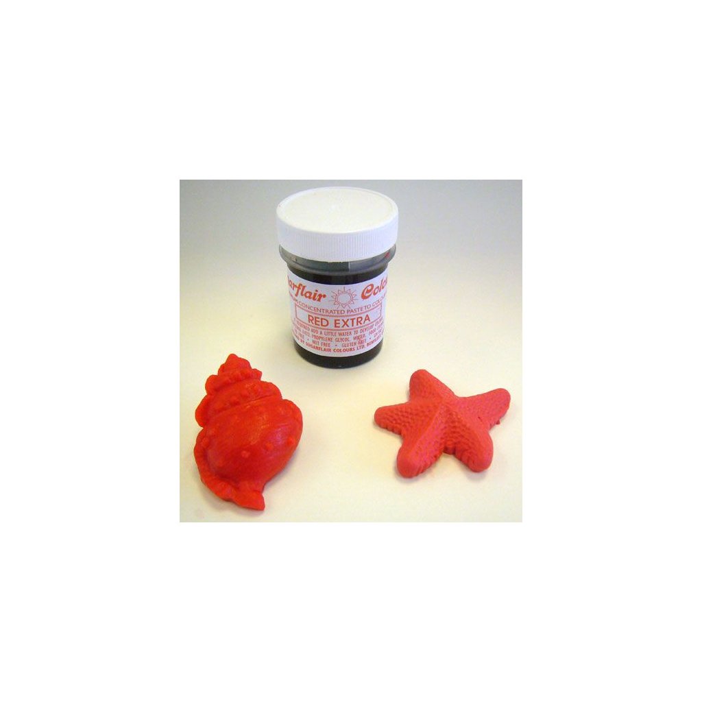 Složení, co obsahuje produkt - Gelová barva Sugarflair 42 g Extra sytá červená pro cukrářské účely: