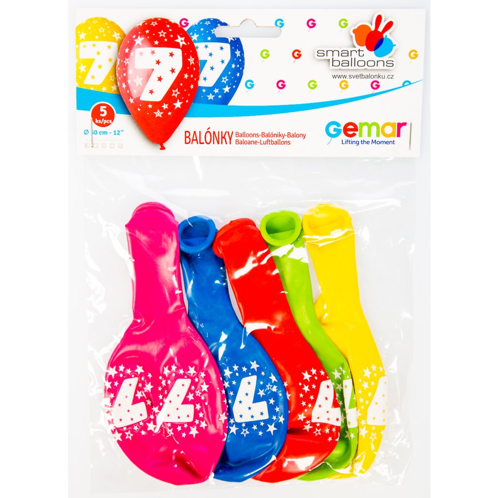 GEMAR Balónek nafukovací 30 cm "7" mix barev 5 ks