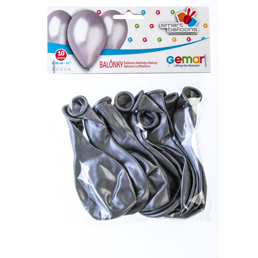 GEMAR Balónek nafukovací metalická stříbrná 10 ks