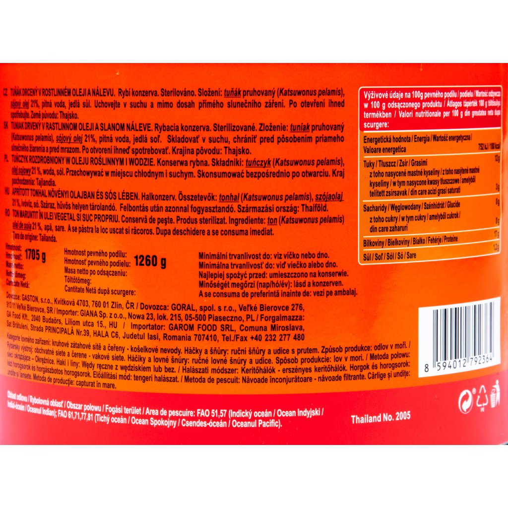 SLOŽENÍ produktu Giana Tuňák drcený v rostlinném oleji a nálevu 1,705 kg: