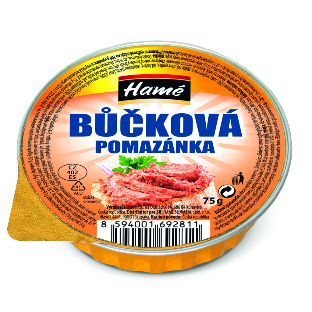 NUTRIČNÍ HODNOTY produktu - Hamé Pomazánka bůčková 75 g / 100g výrobku