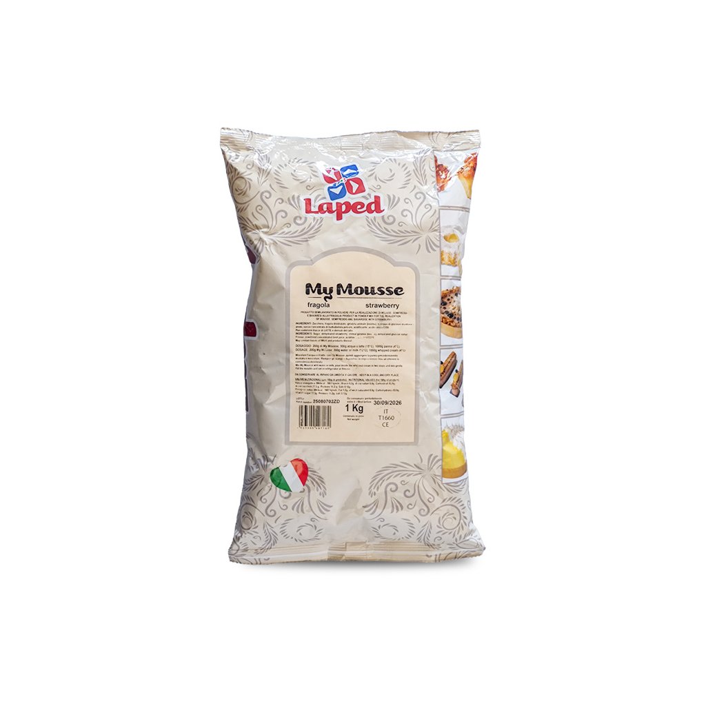 Sypká směs na výrobu pěn (mousse), semifred a bavorských krémů (crème bavaroise), ale i ztužení šlehačky s příchutí jahody