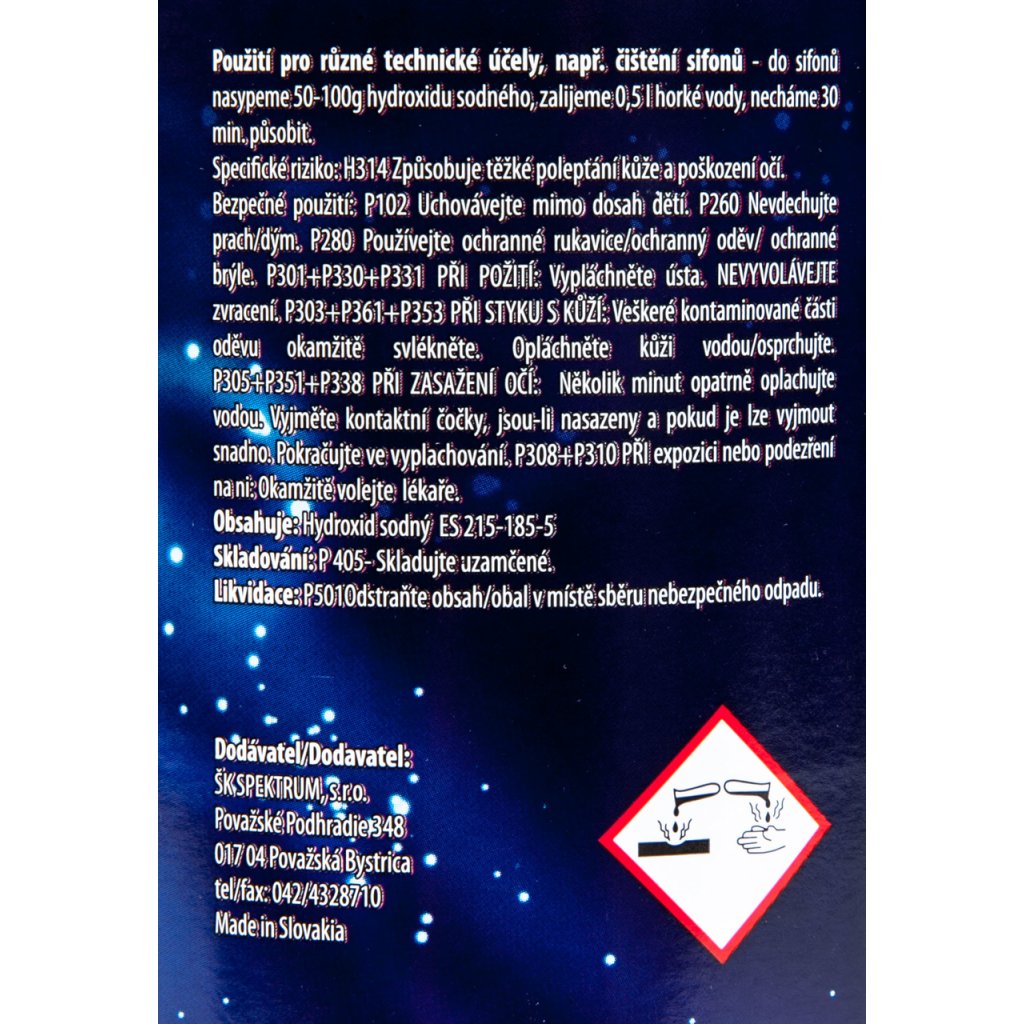 Důležité upozornění: | Dle zákona č. 258/2000 Sb. je minimální věk kupujícího pro uzavření kupní smlouvy na zboží klasifikované jako žíravé 18 let. Vloží-li kupující do košíku takové zboží, prohlašuje tím, že tuto podmínku věku splňuje. |