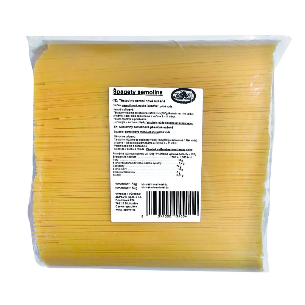 Produkt JAPAVO Špagety semolinové 5 kg Vás nezklame.