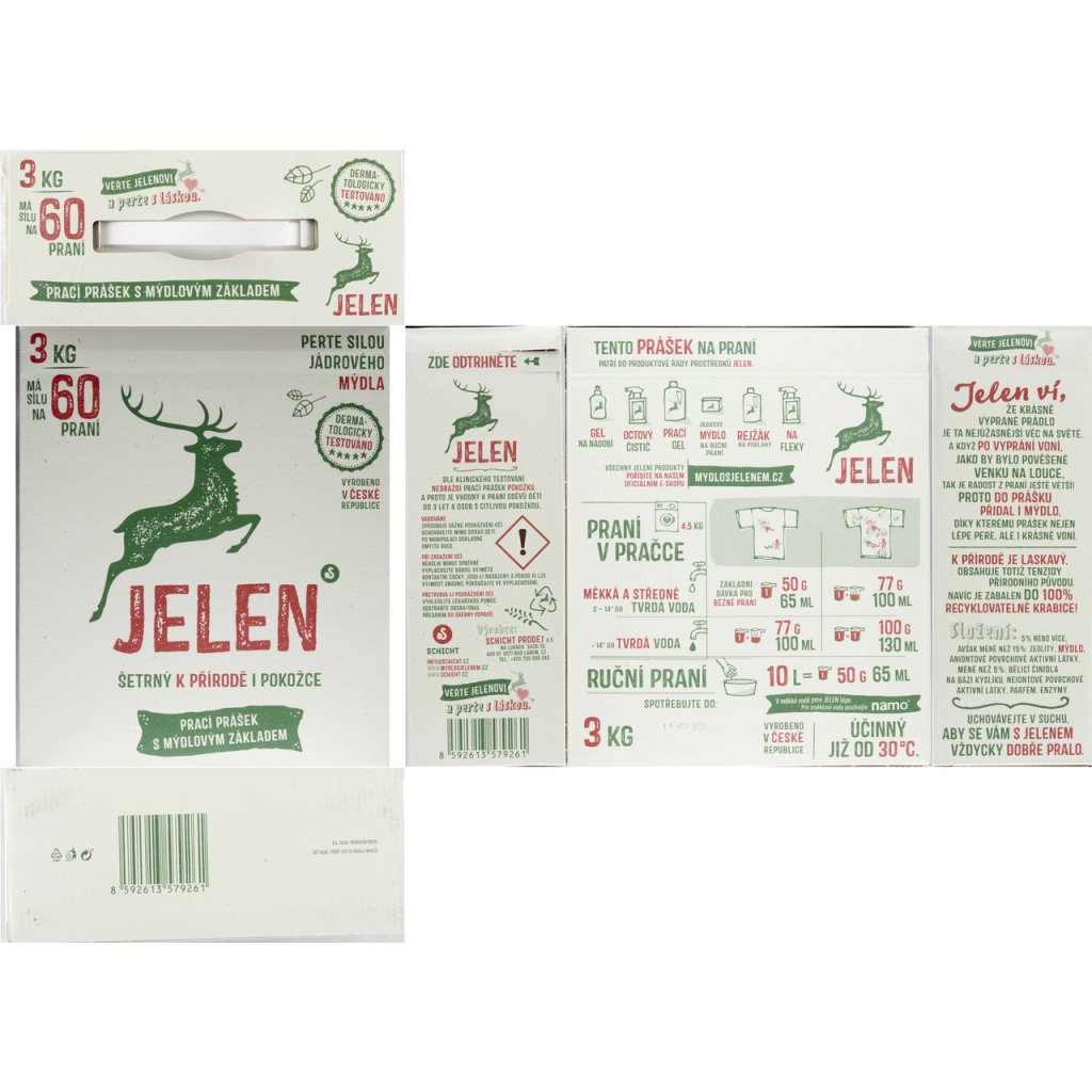 Produkt JELEN Prášek na praní s mýdlovým základem (60 praní) 3 kg Vás nezklame.