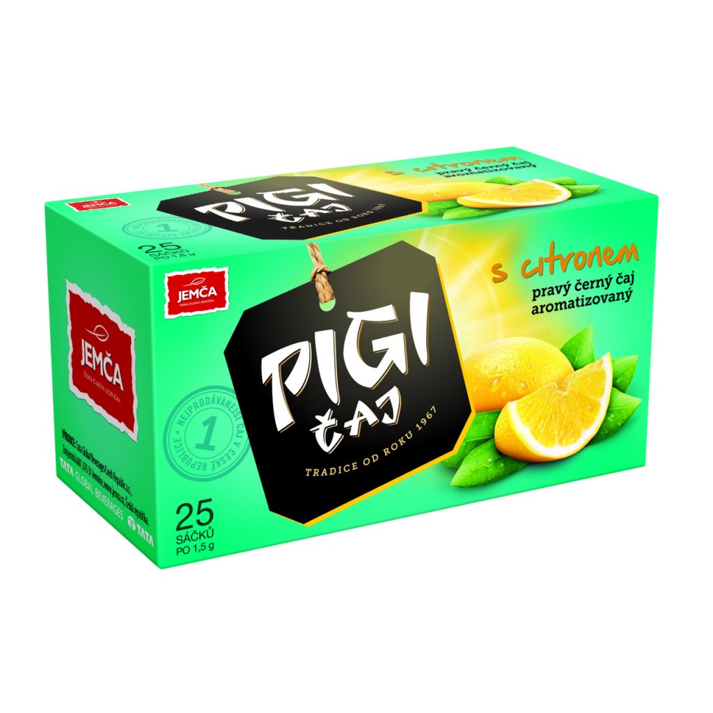 - Pigi čaj s citronem 37,5g, pravý černý čaj aromatizovaný (porcovaný v nálevových sáčcích)