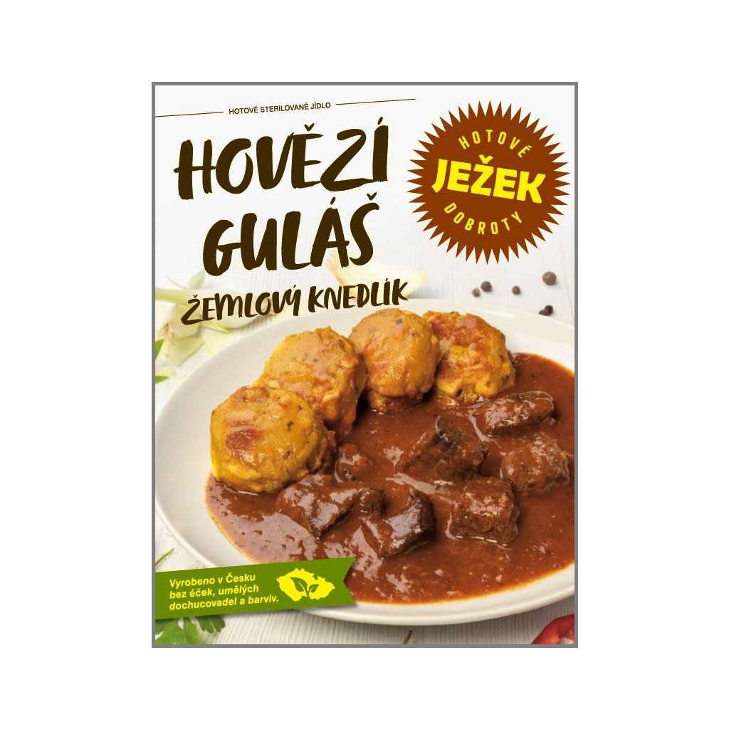 Produkt Ježkovy krabičky Hovězí guláš, žemlový knedlík 450 g Vás nezklame.
