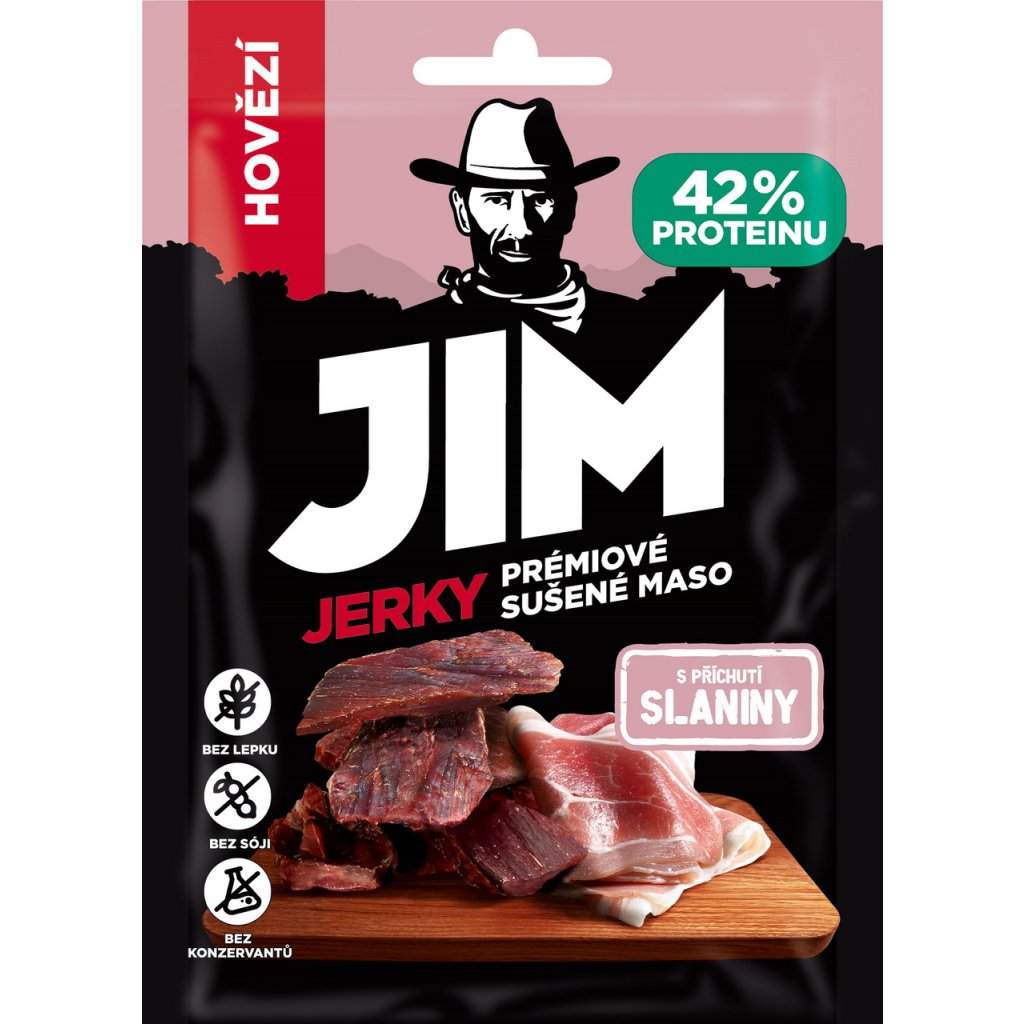 Produkt JIM Jerky hovězí slanina 30 x 23 g Vás nezklame.