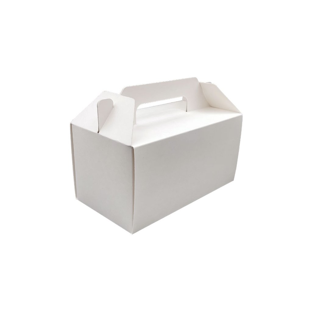 Papírové krabičky na svatební výslužku nebo zákusky v čistě bílé barvě ve velikosti 19 x 10 x 10 cm v balení po 10 ks. Vhodné například na svatební cukrovinky a především pořádnou svatební výslužku. Díky praktickému uchu a jednoduchému sestavení tyto krabičky ušetří čas i starosti. Papír, ze kterého je krabička vyrobena má atest pro přímý styk s potravinami. Materiál: PapírRozměry: 19 x 10 x 10 cm.Balení: 10 ksDoplňkové parametry