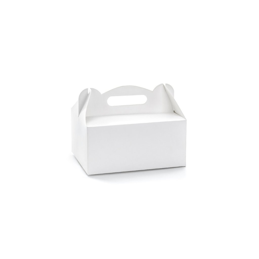 Bílá papírová krabička na výslužku se zaoblenými tvary, vhodná například na svatební cukrovinky nebo malý dáreček. Další možností je využít krabičku při dekoraci jako podstavec apod. Hodí se na všechny příležitosti, jako jsou svatby, firemní večírky nebo oslavy narozenin. Rozměry: 19 x 14 x 9 cm. Balení: 10 ks.Doplňkové parametry