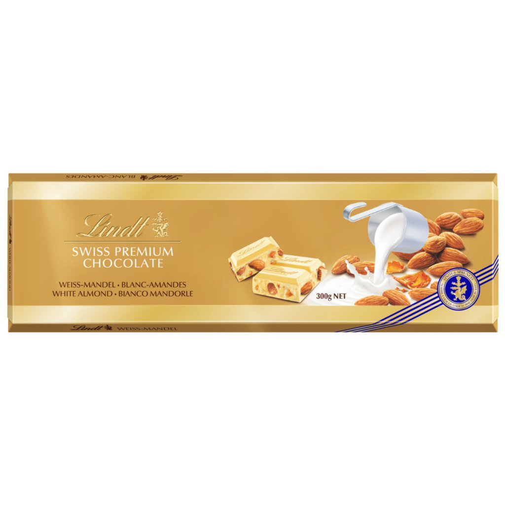 Produkt Lindt Čokoláda bílá s mandlemi 300 g Vás nezklame.