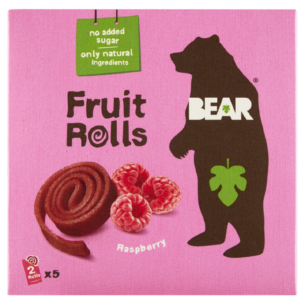 - YOYO BEAR Jemně sušená ovocná dřeň s příchutí maliny, rolované plátky.