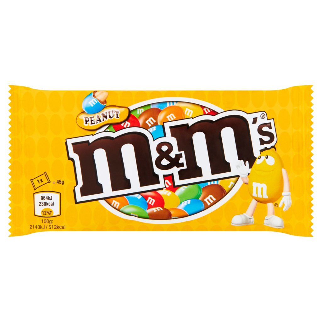 - M&M's arašídové 45g DRAŽÉ PLNĚNÉ PRAŽENÝMI ARAŠÍDY (24%) V MLÉČNÉ ČOKOLÁDĚ (48%) A CUKROVÉ POLEVĚ.
