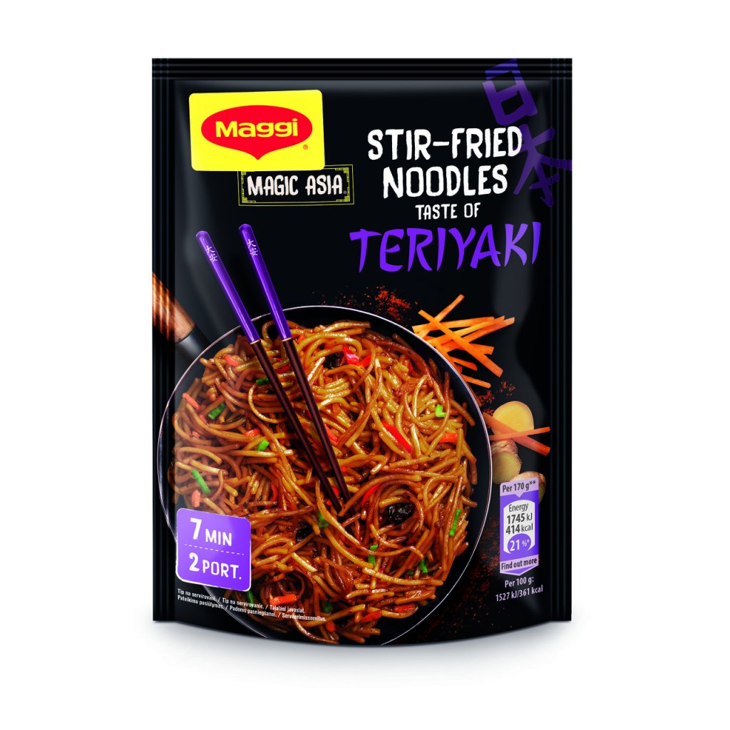 - MAGGI MAGIC ASIA Teriyaki těstoviny. Směs pro přípravu hotového pokrmu smažené nudle. Dehydratovaný výrobek.
