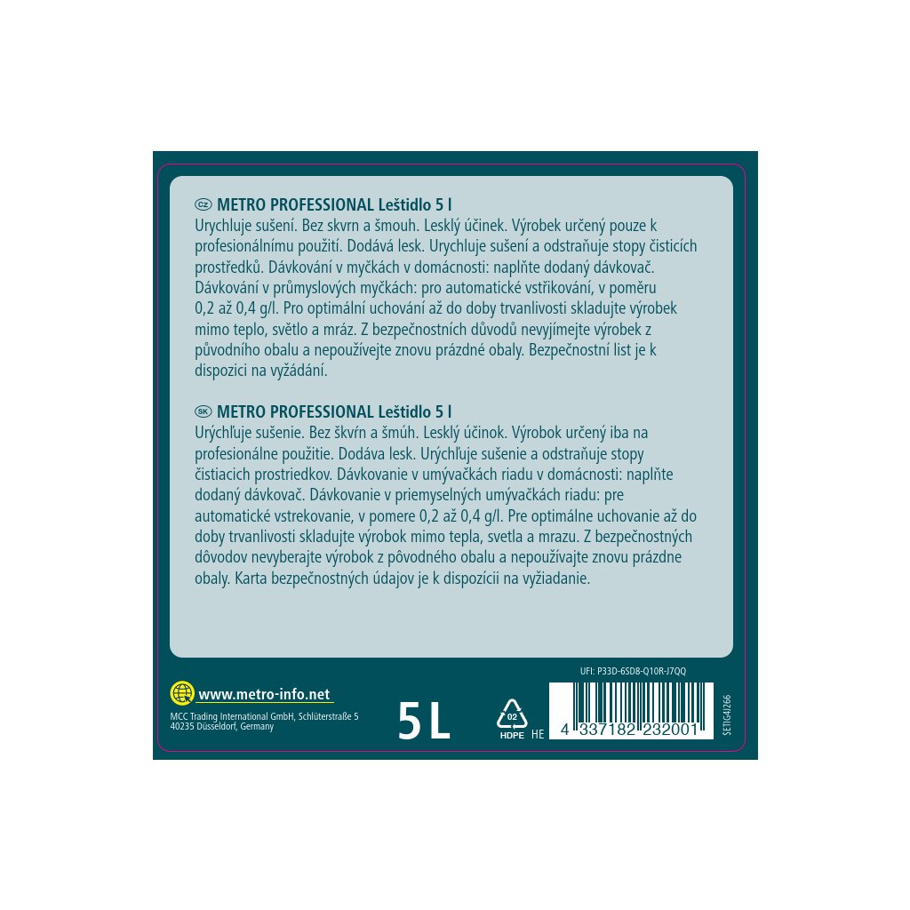 Produkt METRO PROFESSIONAL Leštidlo do myčky 5 l Vás nezklame.