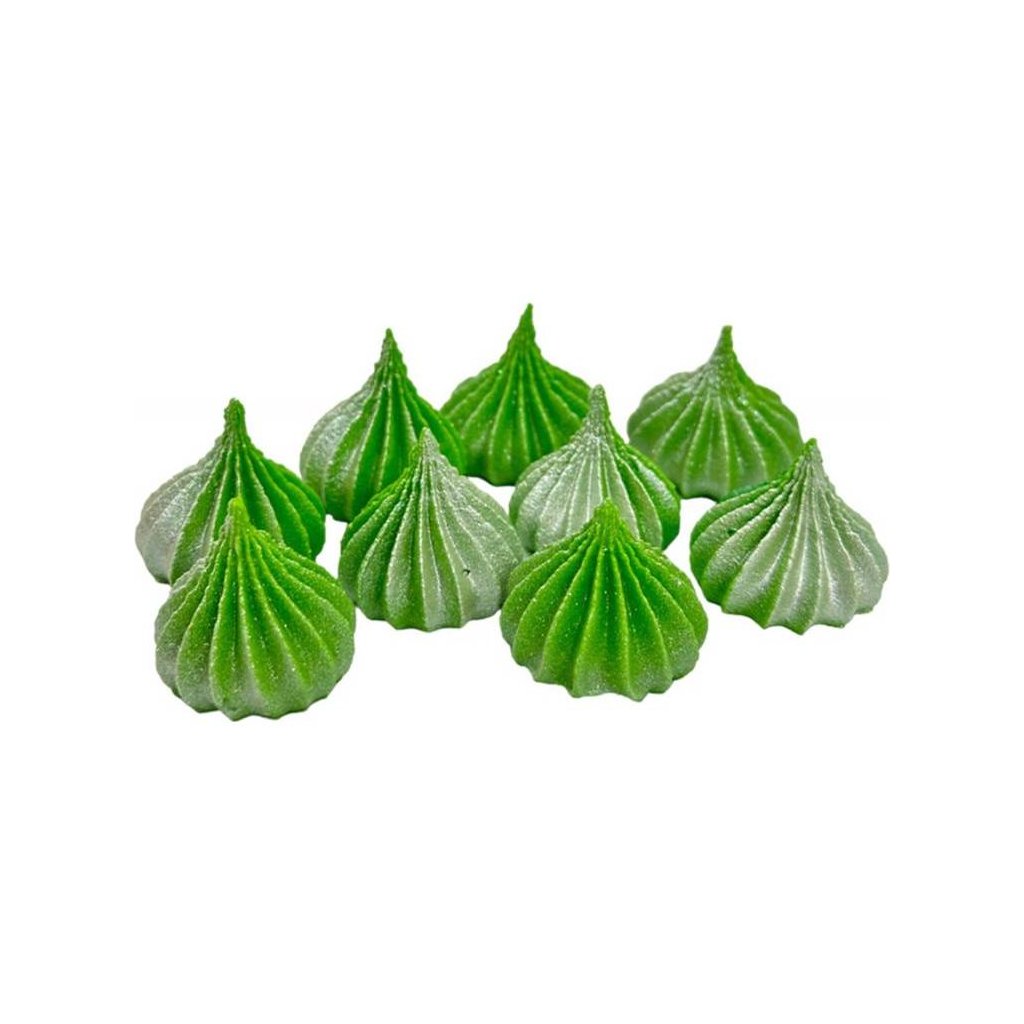 Cukrářské potřeby a suroviny pro sladké pečení.Produkt pro domácí cukráře: Mini pusinky zelené se stříbrnými třpytkami 9ks - I LOVE CAKES ,