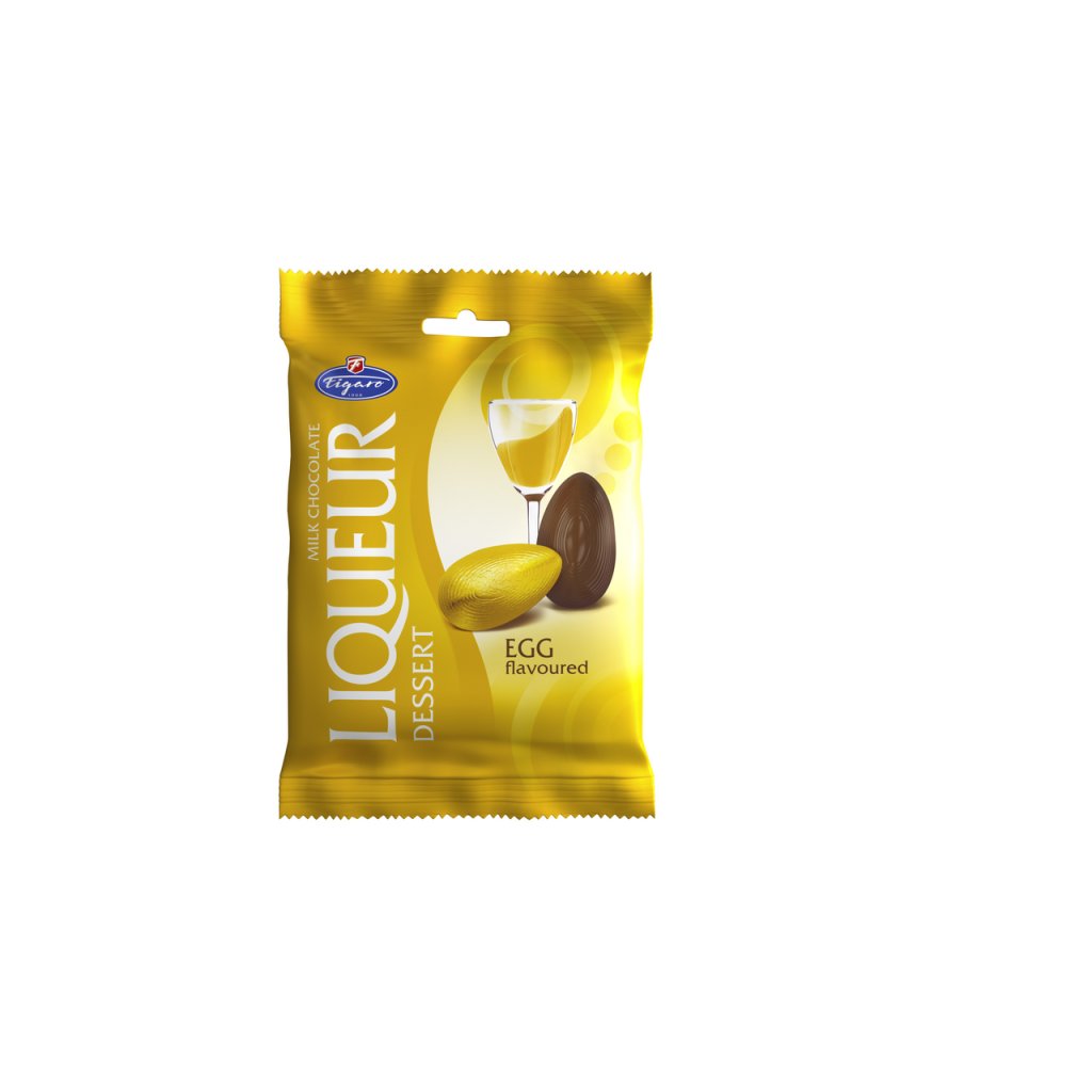 - Mléčná čokoláda (52%) s vaječnou alkoholovou náplní (48%)