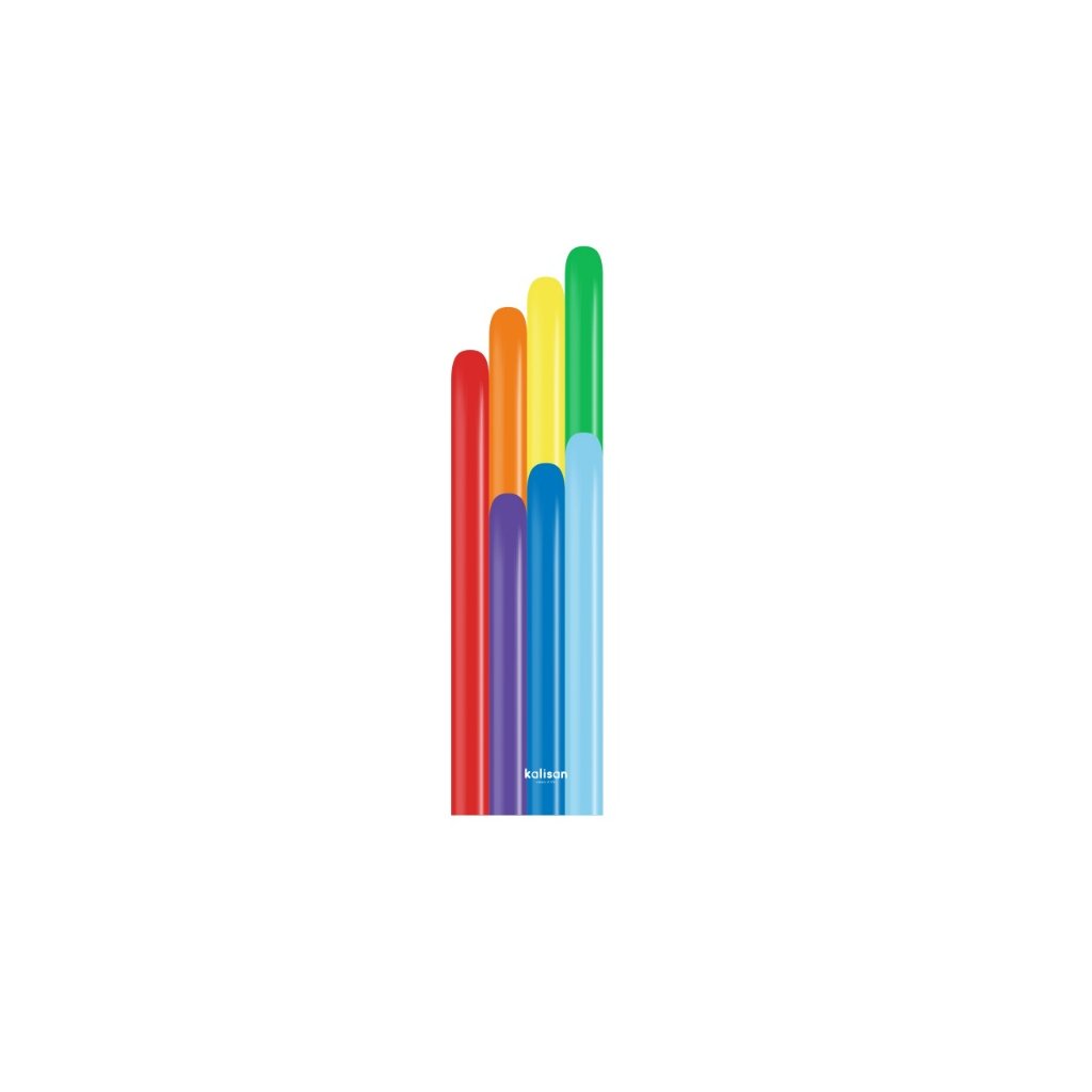 Profesionální modelovací balónky značky Kalisan v barevném duhovém mixu. Balonky jsou velice pevné a nepraskají. Balení obsahuje 100 balónků velikosti 160M (cca 2,5 cm průměr, 150 cm délka). Toto balení, ideální pro profesionální umělce a dekoratéry balónků, umožní vytvářet stylové a poutavé balónková výtvory. Velikost: 160M (přibližně 1" v průměru a 60" na délku při plném nafouknutí)Materiál: Vysoce kvalitní latexPoužití: Vhodné pro vnitřní i venkovní použitíVlastnosti: Flexibilní, odolný a dlouhotrvajícíBalení: 100 ks Kalisan je světově známá společnost, která vyrábí vysoce kvalitní, biologicky odbouratelné a bezpečné latexové balónky (neobsahují nitrosaminy), které jsou doporučovány dekoratérům a balónovým nadšencům. Vybírat můžete z balónků Retro, Mirror (Chrome), Standard, Macaron, ale i potištěných balónků pro mnoho příležitostí. Jejich bylónky se vyznačují vysokou pevností, úžasným portfóliem barev a dlouhou životností.Doplňkové parametry