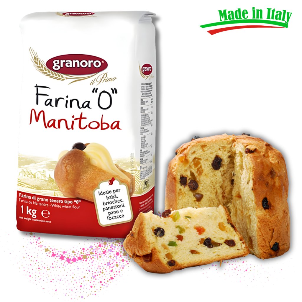 Mouka Granoro MANITOBA 1kg Farina "0" nejen pro Panettone Speciální mouka pro croissanty, briošky, babà, cream puffs, vánočku, panettone a pandoro