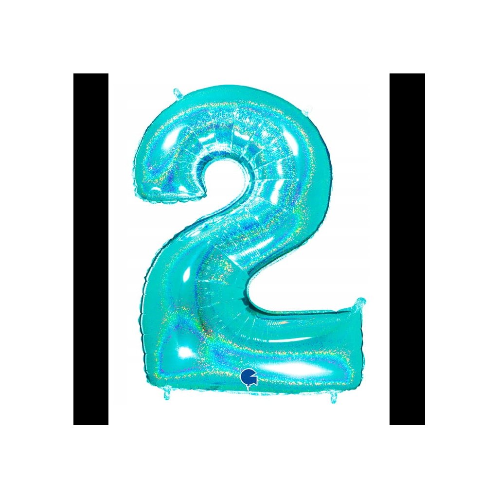 Nafukovací balónek číslo 2 tyrkys holografický 102 cm - Grabo | Cukrářské potřeby
