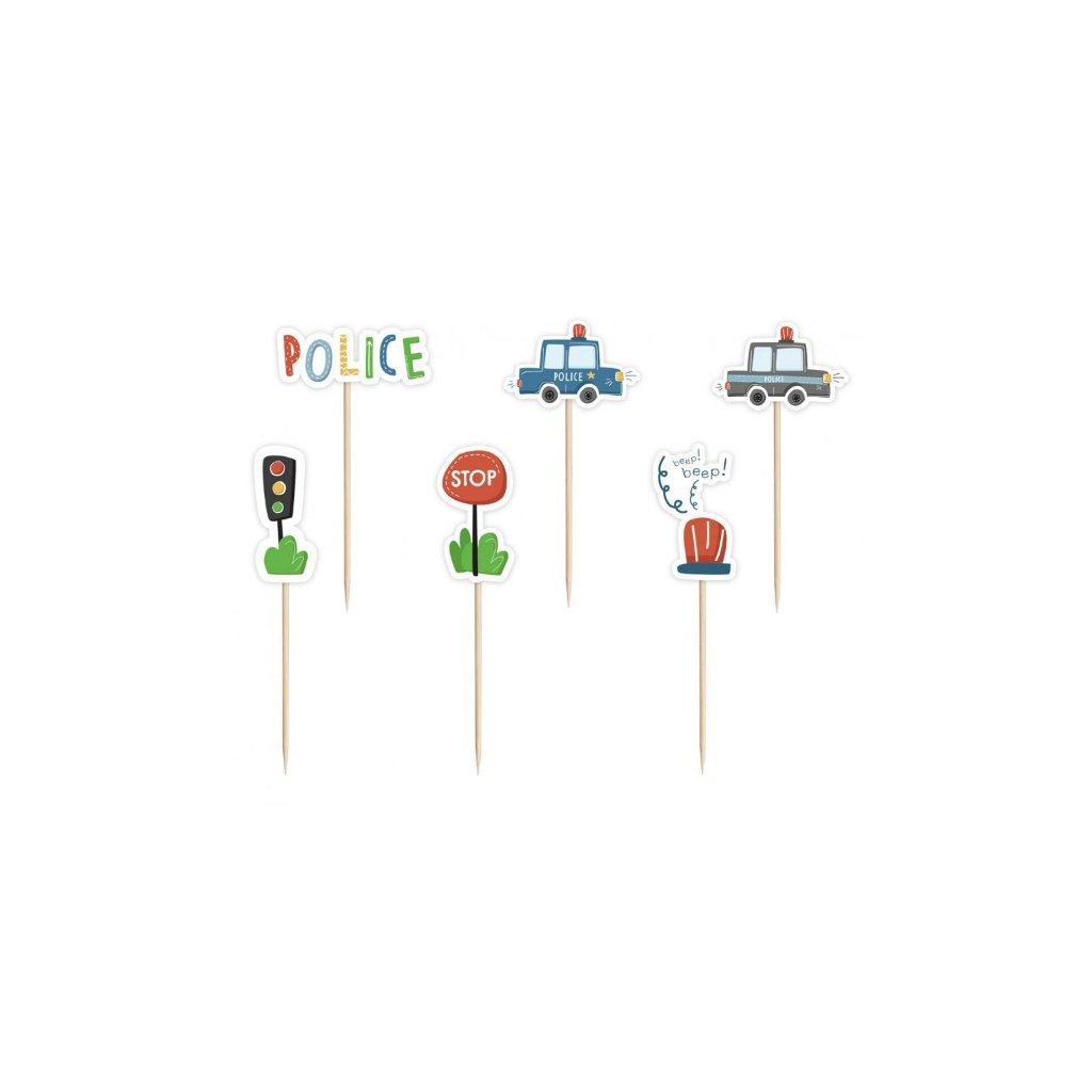 Napichovátko na lahůdky. Vhodné na narozeninovou oslavu malého policistu nebo tématickou party, balení 6 ks.Doplňkové parametry