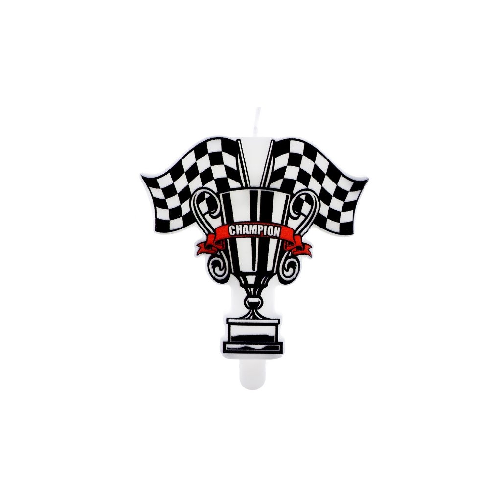 Svíčka Formule 1 Champion promění dort v cílovou rovinku každé závodní párty. Stylový pohár s šachovnicovými vlajkami a červenou stuhou s nápisem Champion potěší každého malého pilota. Perfektně ladí s dalšími doplňky ze série Formule 1. Díky plastové tyčince se snadno zapíchne do dortu a bezpečně drží. Hodí se na narozeninové oslavy malých fanoušků závodů, motorsportu nebo tematických Formule 1 party. Doporučujeme kombinovat s papírovými talíři, ubrousky a kelímky z téže série. Materiál: Parafín, plastRozměry: 7,3 × 8 cmBalení: 1 ksBarva: Černobílá se stuhou v červenéDoplňkové parametry