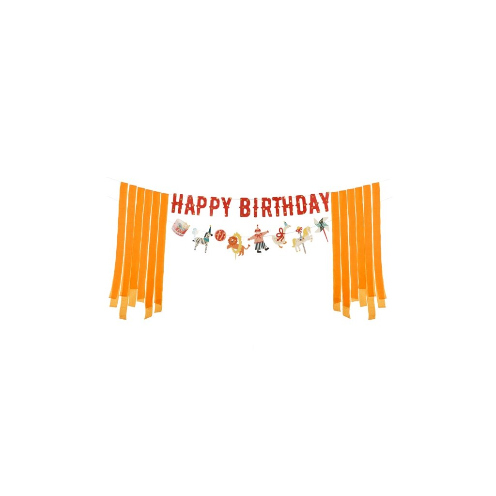 Barevný a krásný narozeninový nápis Happy Birthday ve stylu cirkusu, který je dozdobený pentlemi a postavami neodmyslitelně patřícími ke klasickému cirkusu. S touto dekorační sadou vyzdobíte narozeniny jedna dvě a sklidíte zasloužený potlesk. Materiál: PapírVelikost: 275 cmBalení: 1 sadaObchodní balení: AnoDoplňkové parametry