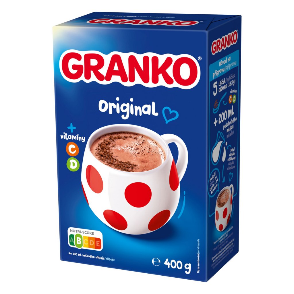 - Návod na přípravu: Chutná za tepla i za studena. 3 lžičky (8 g) GRANKO + 200 ml polotučného mléka.