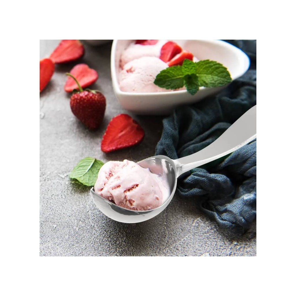 Lžíce k nabírání domácí i kupované zmrzliny v kelímku pomůže naservírovat tuto osvěžující dobrotu do pohárů, misek, kornoutů nebo třeba k lívanečkům. Křehký jablečný štrúdl si také velmi rozumí s vanilkovou zmrzlinou. Naběračku můžete využít i k nabírání rýže, bulguru, kuskusu nebo bramborového pyré. Objem lžíce je cca 15 ml. Je vyrobena z pochromovaného kovu a má na konci rukojeti očko k zavěšení. Rozměry: 17 x 4 cmDoplňkové parametry