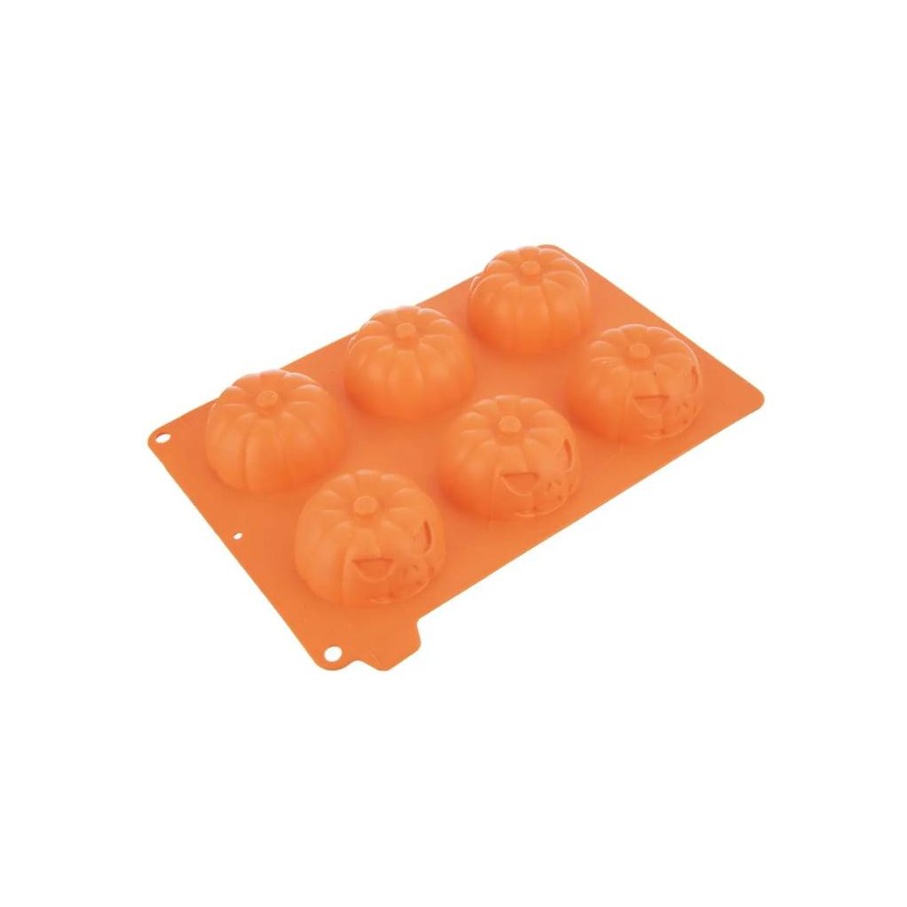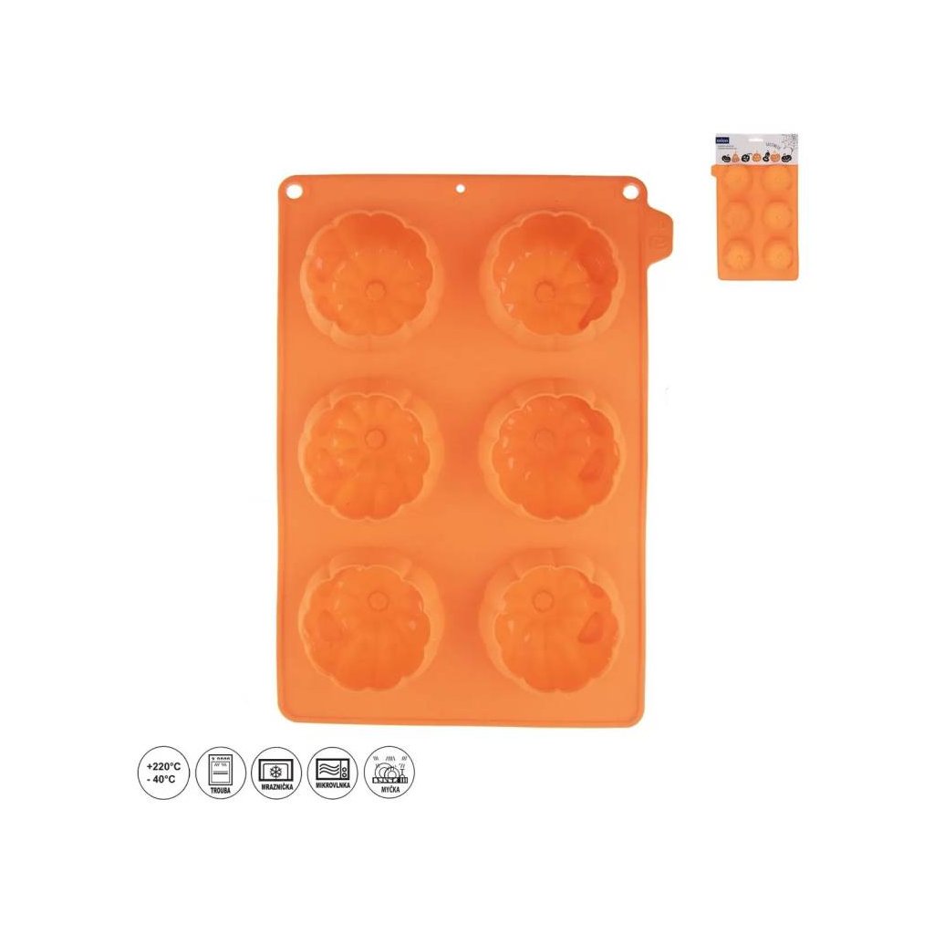 Čas na pečení voňavých, podzimně laděných dobrot, ocení každý. Na nich si pochutnáte v sychravých dnech u dobré kávy. A pokud přijdou halloweenští koledníci, můžete jim tuhle sladkou pozornost nabídnout. Propracované detaily, pružnost a nepřilnavost zajistí šikovná forma. Sladký moučník z litého, třeného nebo klasického piškotového těsta můžete ponechat tak, jak je, nebo je máčet v čokoládové polevě, sypat oříšky nebo barevným posypem. Rozměry: 27 x 18 x 5 cm Průměr jedné dýně: 7 cmDoplňkové parametry