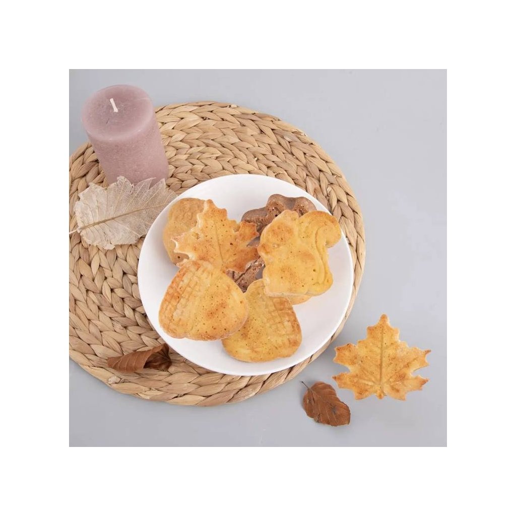 Silikonová forma Vám vytvoří krásné podzimní dobroty. Můžete vytvořit nepečené i čokoládové zákusky, stejně dobře v ní ale tyto tvary můžete upéci z piškotového nebo litého těsta, perníčky. Rozměry: 26 x 25,5 x 3 cm Rozměr jednoho tvaru: 6,5 x 6 cmDoplňkové parametry