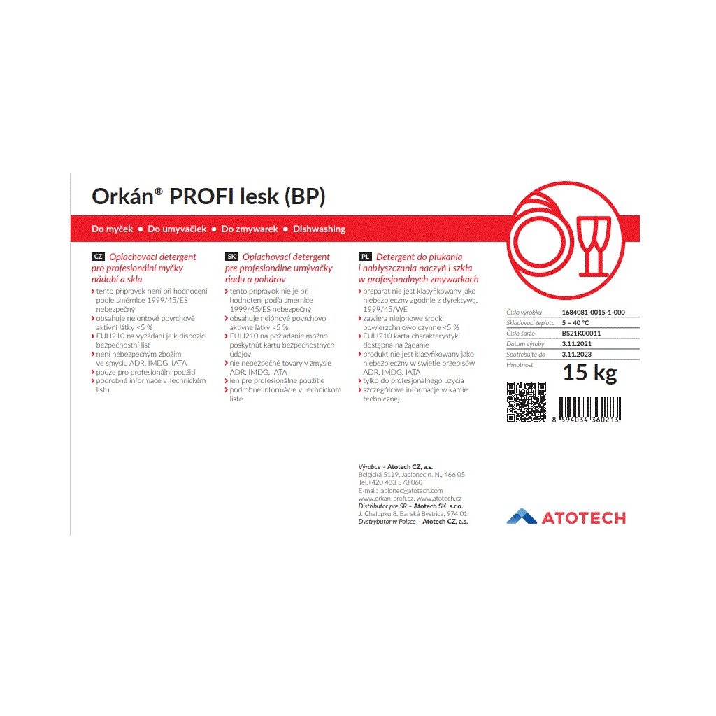 Produkt Orkán Profi lesk neutrální oplachový prostředek do průmyslové myčky 15 kg Vás nezklame.