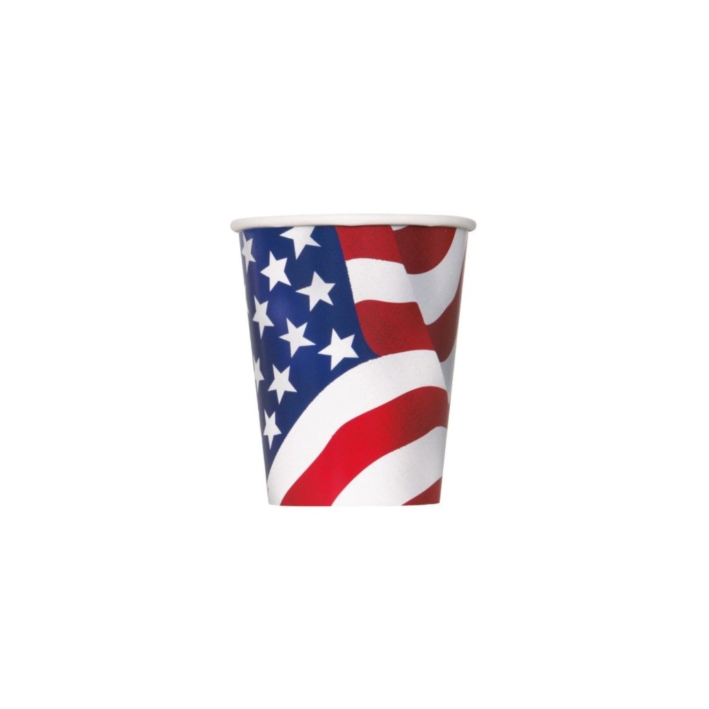 Papírové kelímky s motivem americké vlajky jsou stylovým a praktickým doplňkem každé oslavy ve stylu Spojených států. Díky objemu 266 ml se skvěle hodí na studené i teplé nápoje, ať už podáváte limonádu, ledový čaj nebo domácí punč. Výrazný design s hvězdami a pruhy vynikne na každém slavnostním stole – ať už slavíte 4. července, pořádáte sportovní večírek nebo tematickou párty. Kelímky jsou jednorázové a usnadní úklid po oslavě. Materiál: PapírObjem: 266 mlBalení: 8 ksDoplňkové parametry