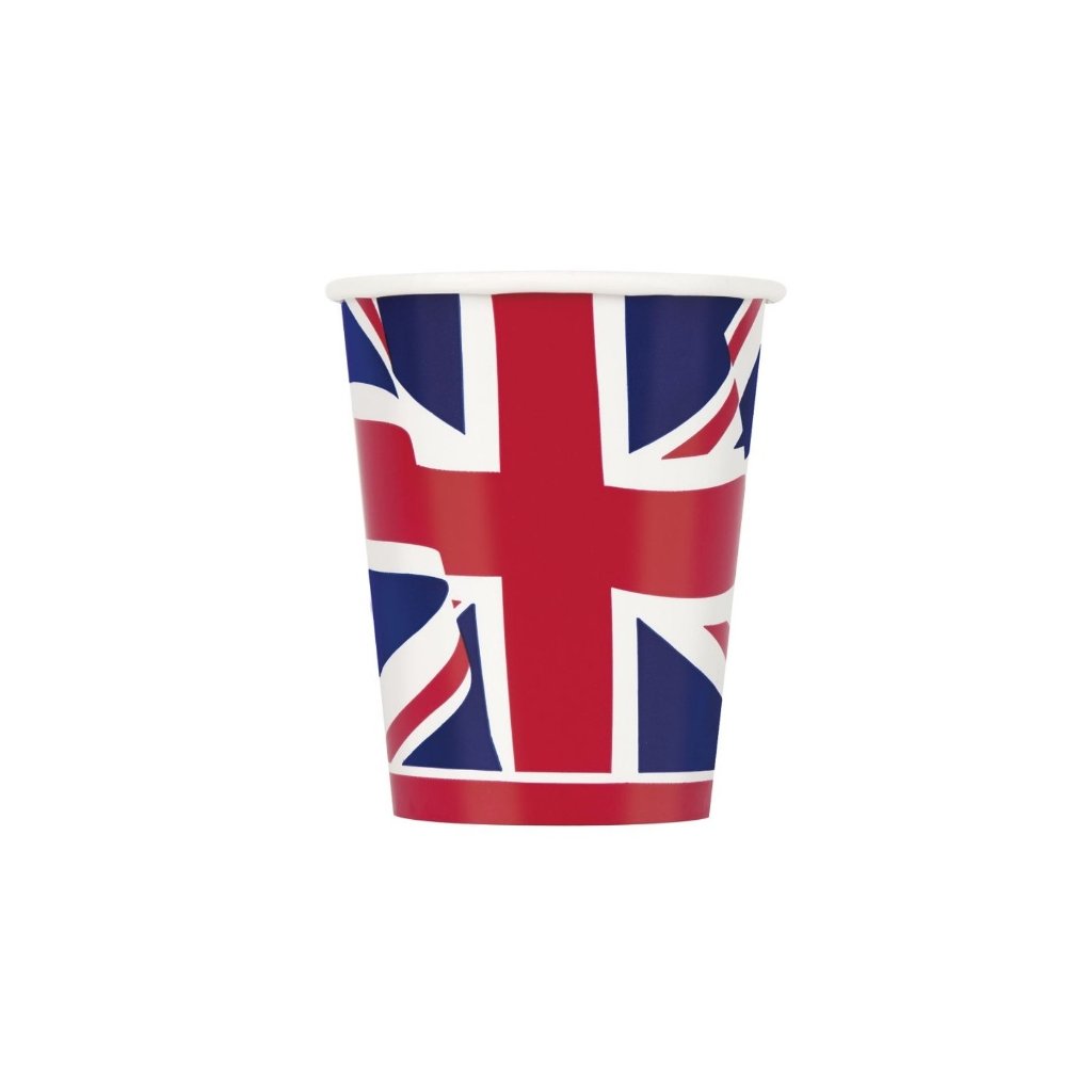 Papírové kelímky s potiskem britské vlajky skvěle doplní tematickou výzdobu oslavy ve stylu Velké Británie. Mají objem 266 ml, ideální na limonádu, čaj nebo jiný oblíbený nápoj. Skvěle poslouží na narozeninové party, sportovní fandění i stylový čaj o páté. Kombinujte s dalšími doplňky s britským motivem pro jednotný vzhled celé oslavy. Materiál: PapírObjem: 266 mlBalení: 8 ksDoplňkové parametry
