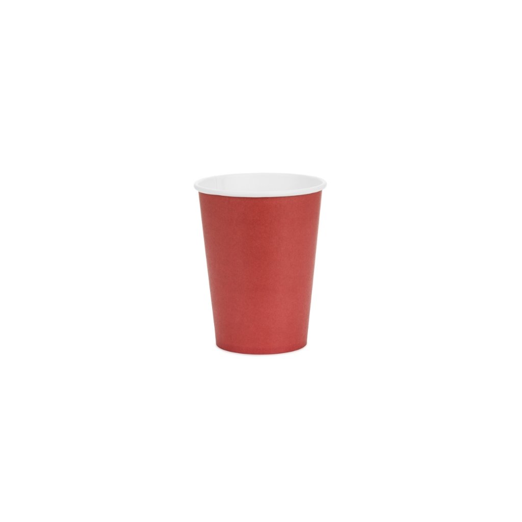 Tmavě červené papírové kelímky o objemu 250 ml a výšce cca 9 cm dodají vašemu stolování slavnostní vzhled. Jsou perfektní volbou pro narozeniny, svatby, firemní večírky, vánoční oslavy i valentýnské party, kde svým výrazným odstínem skvěle doplní ostatní dekorace. Kelímky jsou lehké, vhodné na studené nápoje a po použití je jednoduše vyhodíte. Nejsou určeny pro horké nápoje. Splňují povinné označení dle nařízení EU 2020/2151 o jednorázových plastových výrobcích. V balení je 6 kusů. Technické parametryVýška: cca 9 cmObjem: 250 ml (8,5 oz)Materiál: papírBarva: tmavě červenáPoužití: studené nápojeBalení: 6 ksDoplňkové parametry