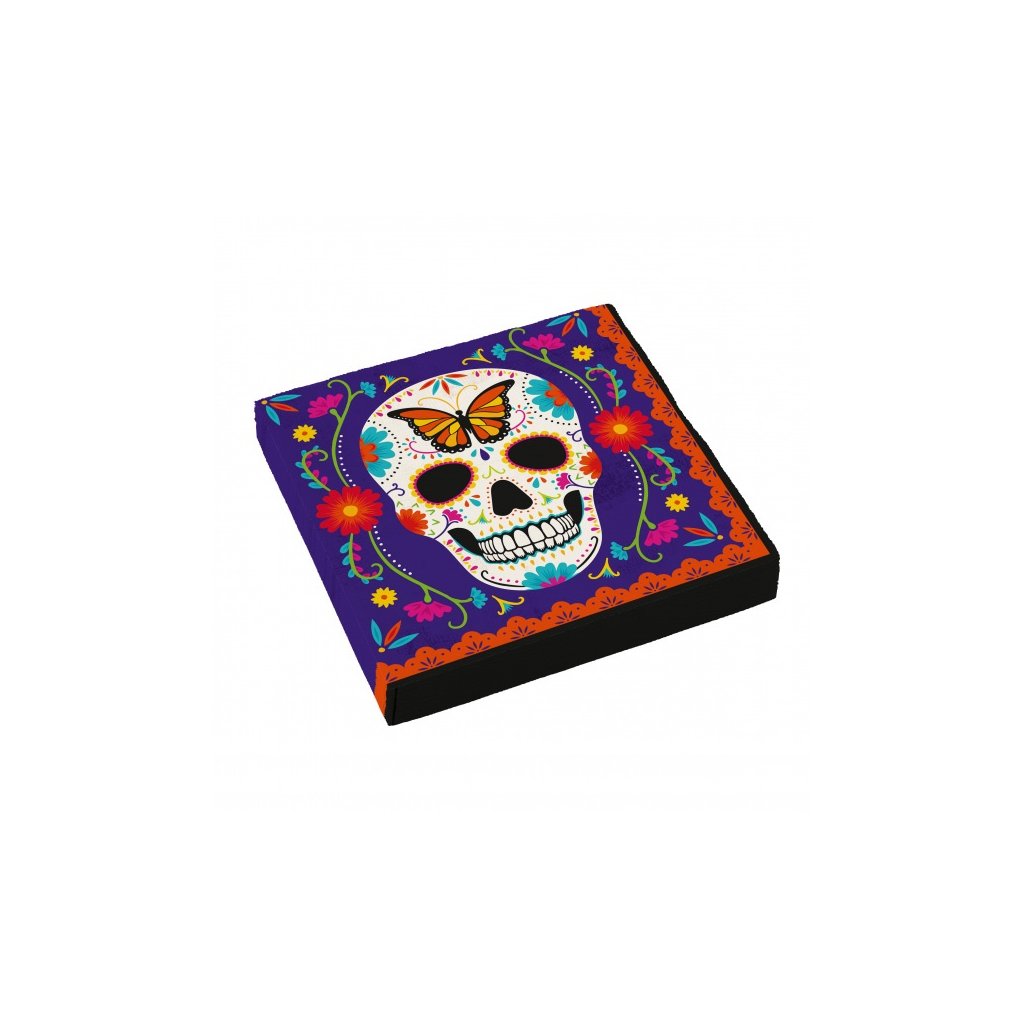 Papírové party ubrousky Halloween - Day of the dead - barevné 16 ks /BP