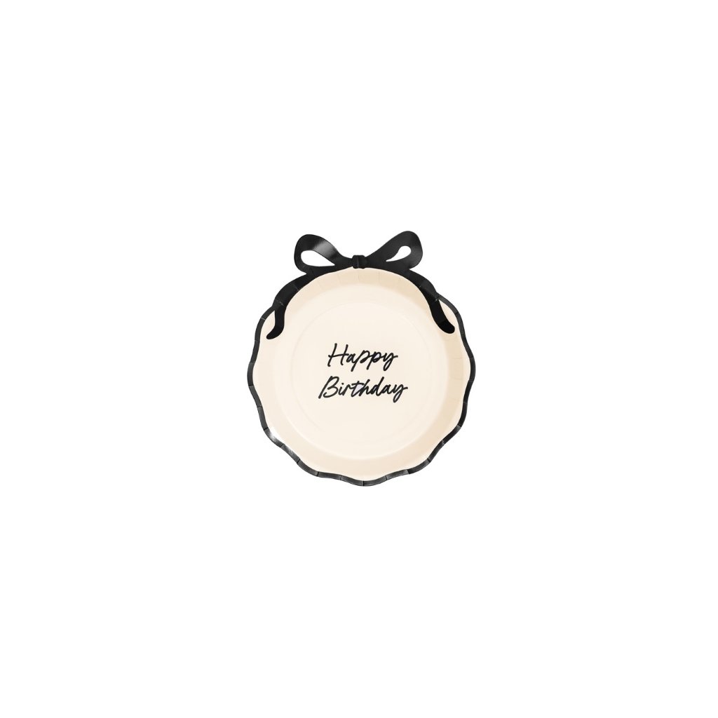 Papírové talíře Happy Birthday, krémové s černými mašličkami, 24 cm /BP