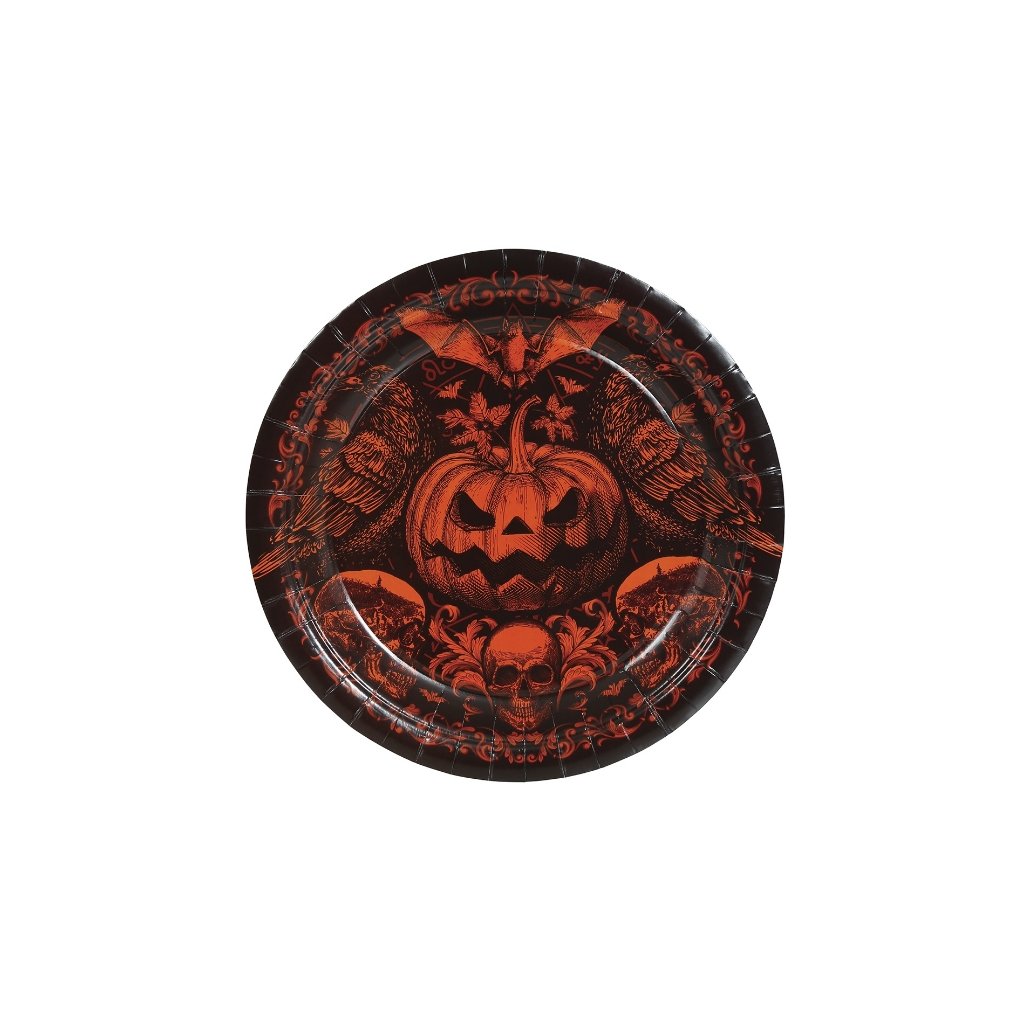 Papírové talířky Gothic Pumpkin jsou skvělou volbou pro ty, kdo chtějí vytvořit skutečně působivou halloweenskou atmosféru. Černooranžový gotický design s motivem dýně, netopýra, lebek a havranů dodá stolování tajemný vzhled a překvapí všechny hosty. Talířky jsou jednorázové, pevné a praktické, takže po skončení oslavy vás nečeká žádné složité uklízení. Perfektně se hodí pro halloweenské večírky, strašidelné hostiny i tematické party. Rozměry: 23 cmMateriál: PapírBarva: Černá, oranžováBalení: 6 ksDoplňkové parametry