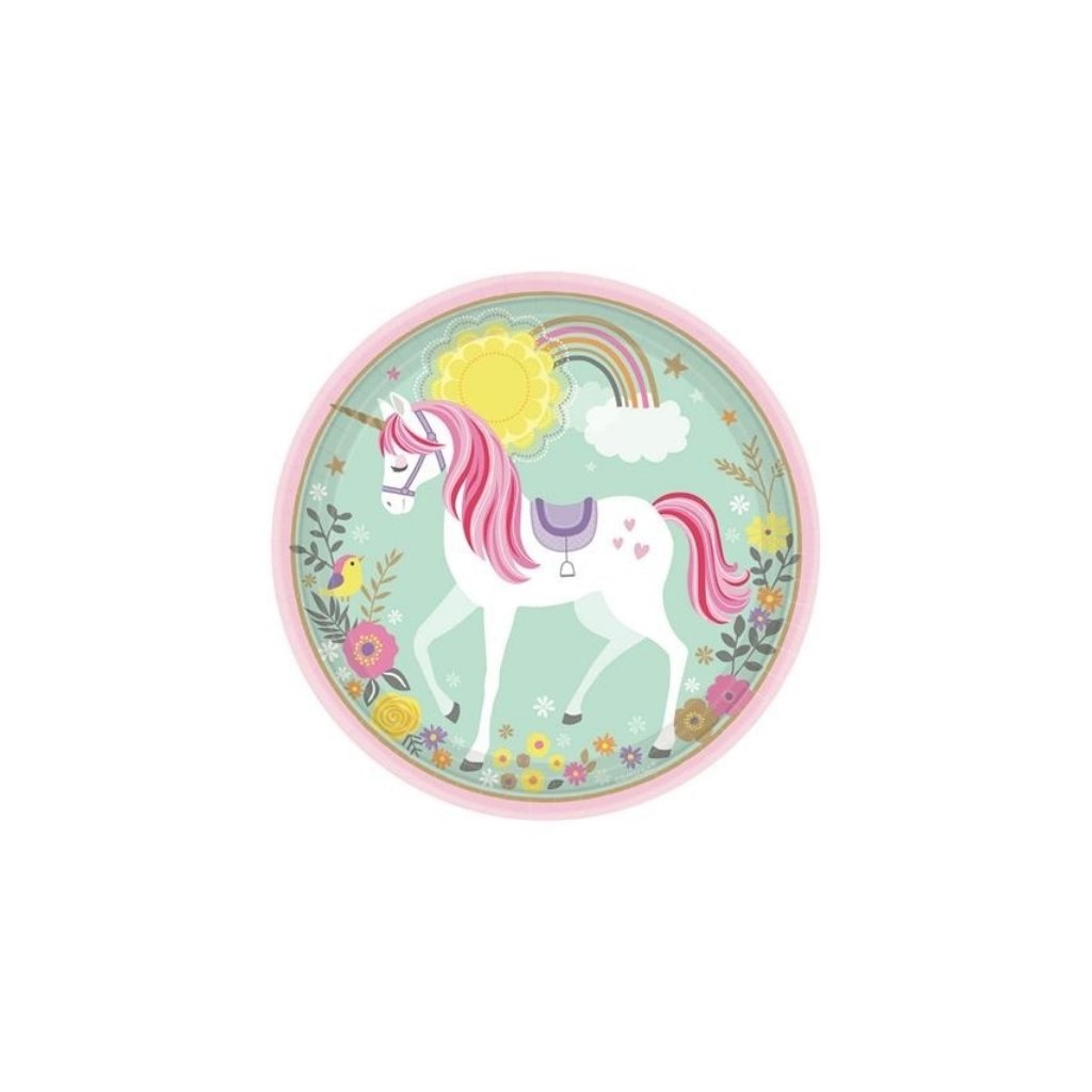 Cukrářské potřeby a suroviny pro sladké pečení.Produkt pro domácí cukráře: Papírový talíř 8ks Unicorn 22,8cm - Amscan ,
