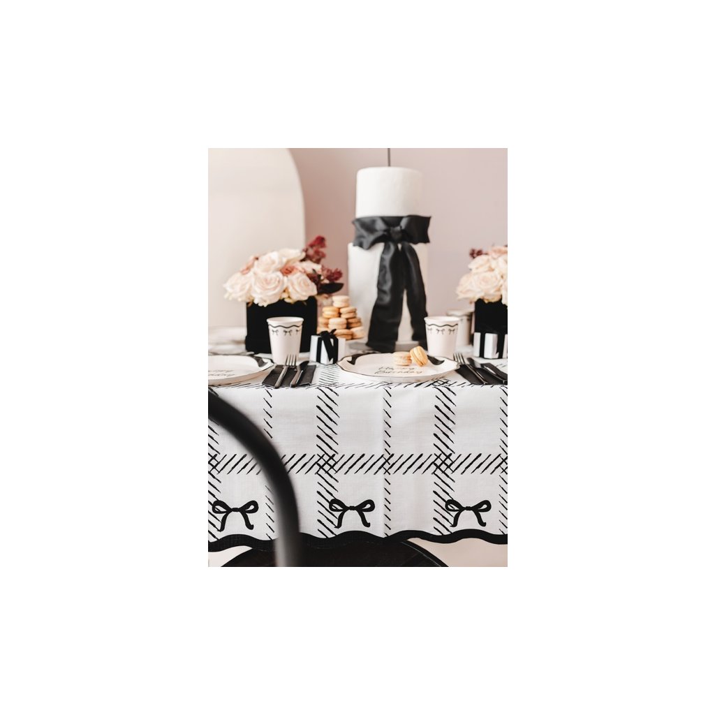Papírový party ubrus s potiskem černých mašliček pro dekoraci oslavy narozenin, výročí nebo rozlučky se svobodou. Tento ubrus je vyrobený z pevného ale jemně vypadajícího papíru, který dozdobí a zároveň ochrání váš stůl. Rozměry 180 x 120 cm vystačí na jeden klasický stůl. Rozměr: 180 x 120 cmMateriál: PapírBalení: 1 ksObchodní balení: AnoDoplňkové parametry