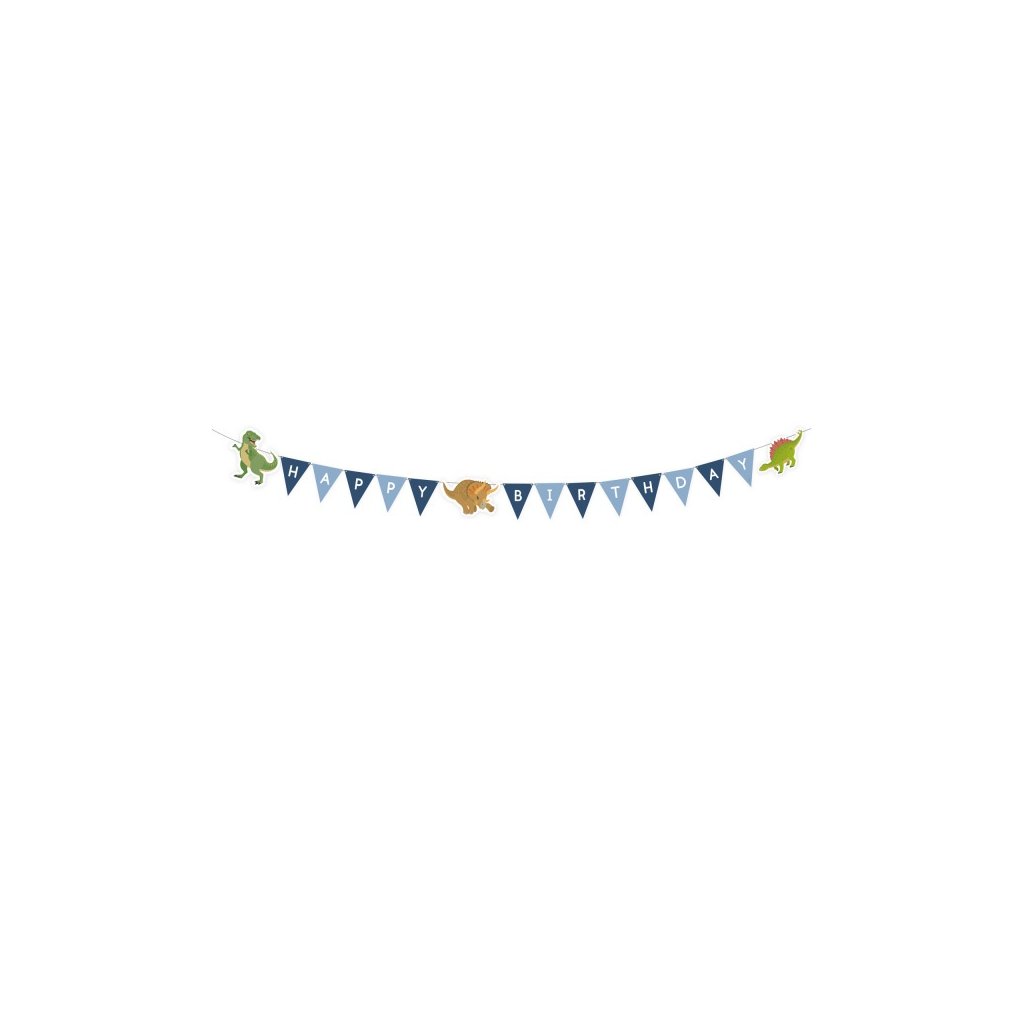 Vlaječkový nápis Happy Birthday v motivu dinosaurů. Skvělá dekorace narozeninové party. Rozměr: 180 x 9 cm. Balení: 1 ks.Doplňkové parametry