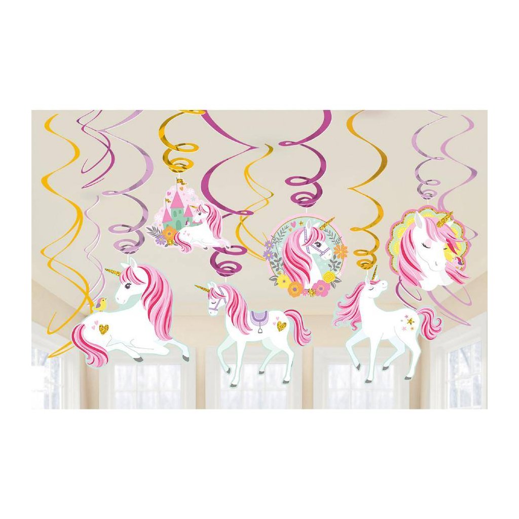 Party dekorace v podobě závěsných spirál s jednorožci. Velikost 61 cm.Doplňkové parametry