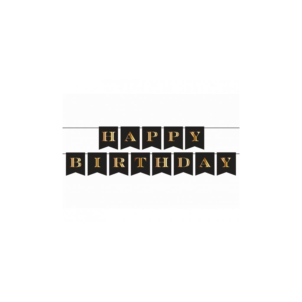 Papírová girlanda s nápisem HAPPY BIRTHDAY v černo zlatém provedení. Balení 13 vlajek.Doplňkové parametry
