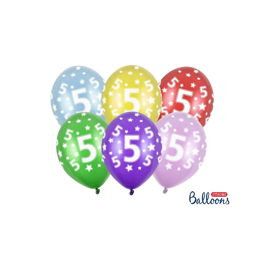 PartyDeco balónky barevné metalické 5. narozeniny (6 ks, náhodné barvy) ♡