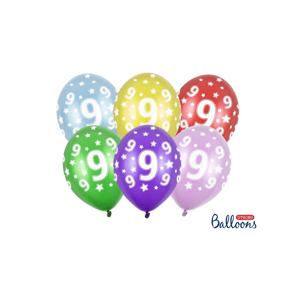 PartyDeco balónky barevné metalické 9. narozeniny (6 ks, náhodné barvy) ▹