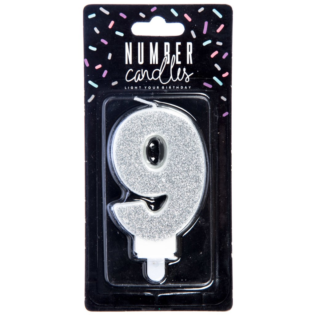 PARTY DECO Svíčka číslice "9" stříbrná 7 cm 1 ks v akci?