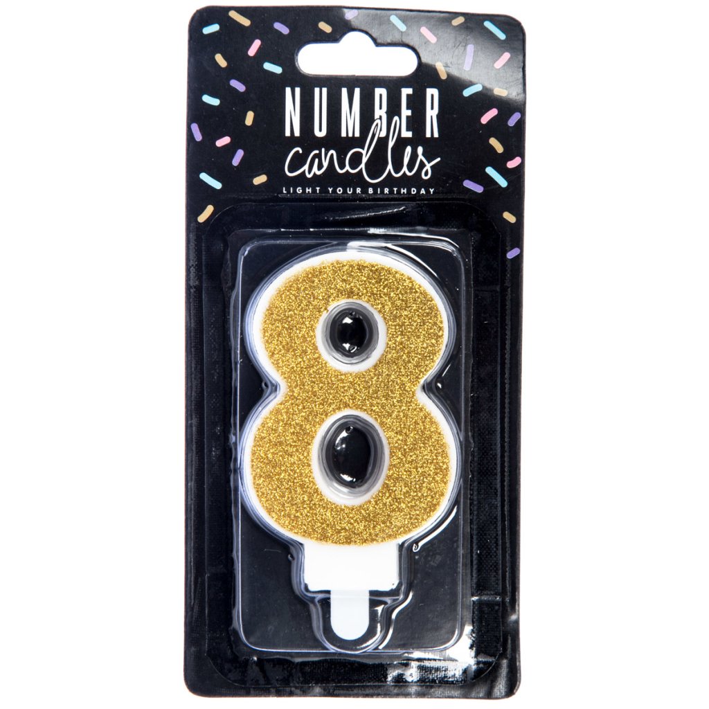 PartyDeco svíčka malá zlatá číslo 8 ♡